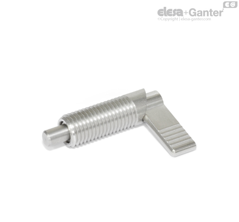Bei Rastriegeln GN 721.5 wird der Raststift durch eine 180°-Drehung des Riegels (auf Anschlag) eingezogen.