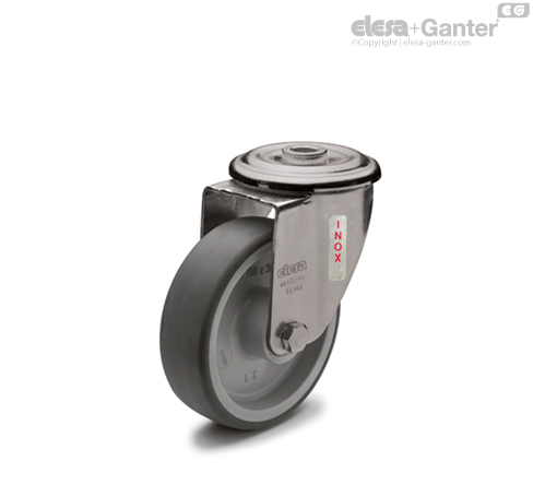 Edelstahlblech. Das Gehäuse ist für eine Tragfähigkeit bis zu 1800N ausgelegt. Die zweifache Kugellagerung und der direkte Kontakt zwischen Platte und Kugellagerhalterung mit integriertem Bolzen garantieren eine ausgezeichnete Manövrierbarkeit. Benötigt keine Wartung.