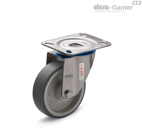 Edelstahlblech. Das Gehäuse ist für eine Tragfähigkeit bis zu 1800N ausgelegt. Die zweifache Kugellagerung und der direkte Kontakt zwischen Platte und Kugellagerhalterung mit integriertem Bolzen garantieren eine ausgezeichnete Manövrierbarkeit. Benötigt keine Wartung.