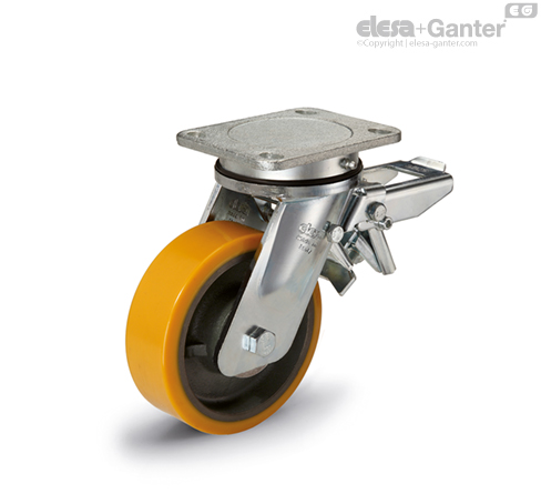 Geeignet für schwere industrielle Anwendungen unter schwierigen Einsatzbedingungen wie Seitenaufprall und hohe Geschwindigkeiten. Die Form von Polyurethan-Räder sorgen für eine hervorragende Gleitfähigkeit und Elastizität, hohe Verschleiß-und Reißfestigkeit. Weitere Informationen siehe RE.F4.