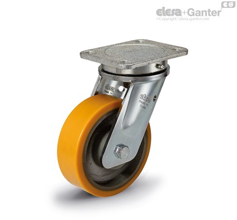 Geeignet für schwere industrielle Anwendungen unter schwierigen Einsatzbedingungen wie Seitenaufprall und hohe Geschwindigkeiten. Die Form von Polyurethan-Räder sorgen für eine hervorragende Gleitfähigkeit und Elastizität, hohe Verschleiß-und Reißfestigkeit. Weitere Informationen siehe RE.F4.