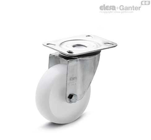 Verzinktes Stahlblech, Gehäuse ist für eine Tragfähigkeit bis zu 3000N ausgelegt. Die zweifache Kugellagerung und der direkte Kontakt zwischen Platte und Kugellagerhalterung mit integriertem Bolzen garantieren eine ausgezeichnete Manövrierbarkeit. Benötigt keine Wartung. Bestehend aus (siehe Bild 1):