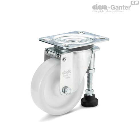 Die Rolle mit rutschfestem Gelenkfuß ermöglicht das Anheben von Wagen oder Maschinen für einen sicheren Betrieb, während gleichzeitig die Möglichkeit einer häufigen Bewegung durch einfaches Verstellen des Sechskants des Fußes gegeben wird, wodurch feste Arbeitsplätze und Geräte effektiv in mobile Arbeitsplätze verwandelt werden können.
