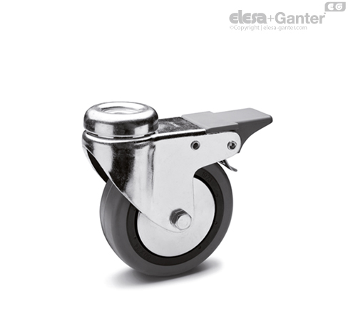 Kunststoff Thermoplast (Polypropylen PP) mit Fadenschutz aus Polyamid (D = 40 mm) oder mit Fadenschutz aus Metall (D = 50/60/80 mm).