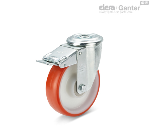 Bremse, sperrt sowohl die Drehung des Rades als auch die des Gehäuses.