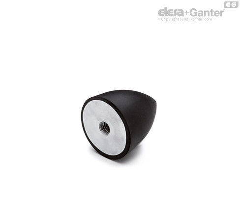 Naturkautschuk, Härte 40, 70 ±5 Shore A für Ausführungen mit nicht rostenden Edelstahl 1.4301 Buchsen / Gewindebolzen.