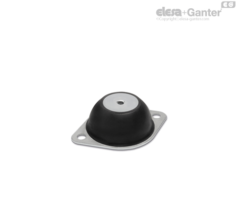 DVE Gummipuffer bestehen aus zwei Metallelementen, die durch einen Anti-Vibrations-Körper aus Naturkautschuk verbunden sind. Ein rundes Element mit einer Buchse und einer durchgehenden Gewindebohrung dienen zur Fixierung. Ein ovaler oder quadratischer Flansch dient zur Fixierung am Boden.
