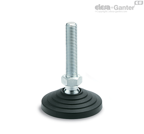 Bei Ausführung mit rutschfester Gummiauflage ist diese fest mit dem Stellfuß verbunden. Ein Lösen der Gummiauflage vom Fuß wird somit selbst bei Transporten mit hohen Krafteinwirkungen verhindert (siehe Rutschfeste Gummiauflage-).