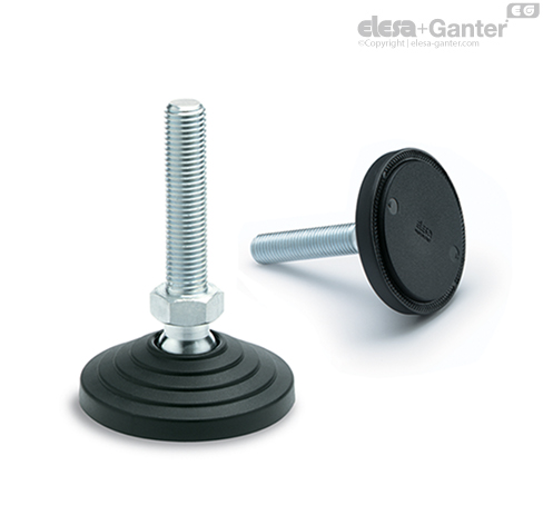 Bei Ausführung mit rutschfester Gummiauflage ist diese fest mit dem Stellfuß verbunden. Ein Lösen der Gummiauflage vom Fuß wird somit selbst bei Transporten mit hohen Krafteinwirkungen verhindert (siehe Rutschfeste Gummiauflage-).