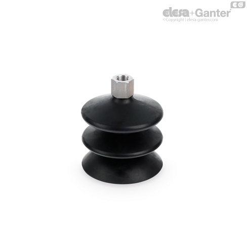 Vakuumsauggreifer aus ölbeständigem Gummi (NBR), Naturkautschuk (NR) oder Silikon (VMQ).