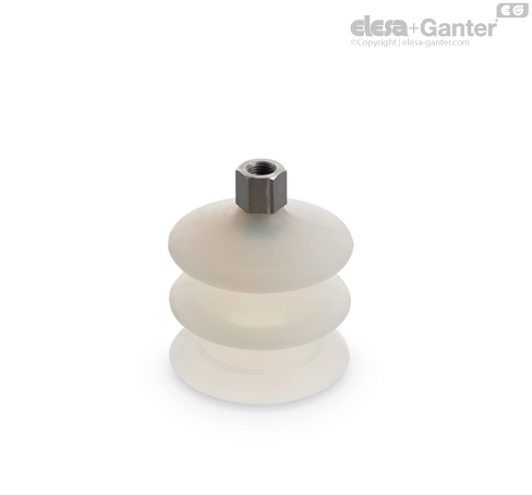 Vakuumsauggreifer aus ölbeständigem Gummi (NBR), Naturkautschuk (NR) oder Silikon (VMQ).