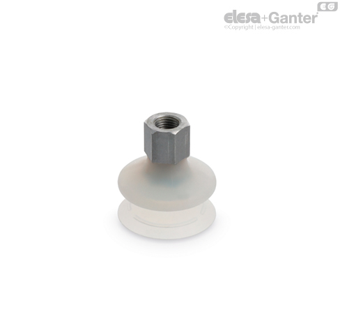 Vakuumsauggreifer aus ölbeständigem Gummi (NBR), Naturkautschuk (NR) oder Silikon (VMQ).